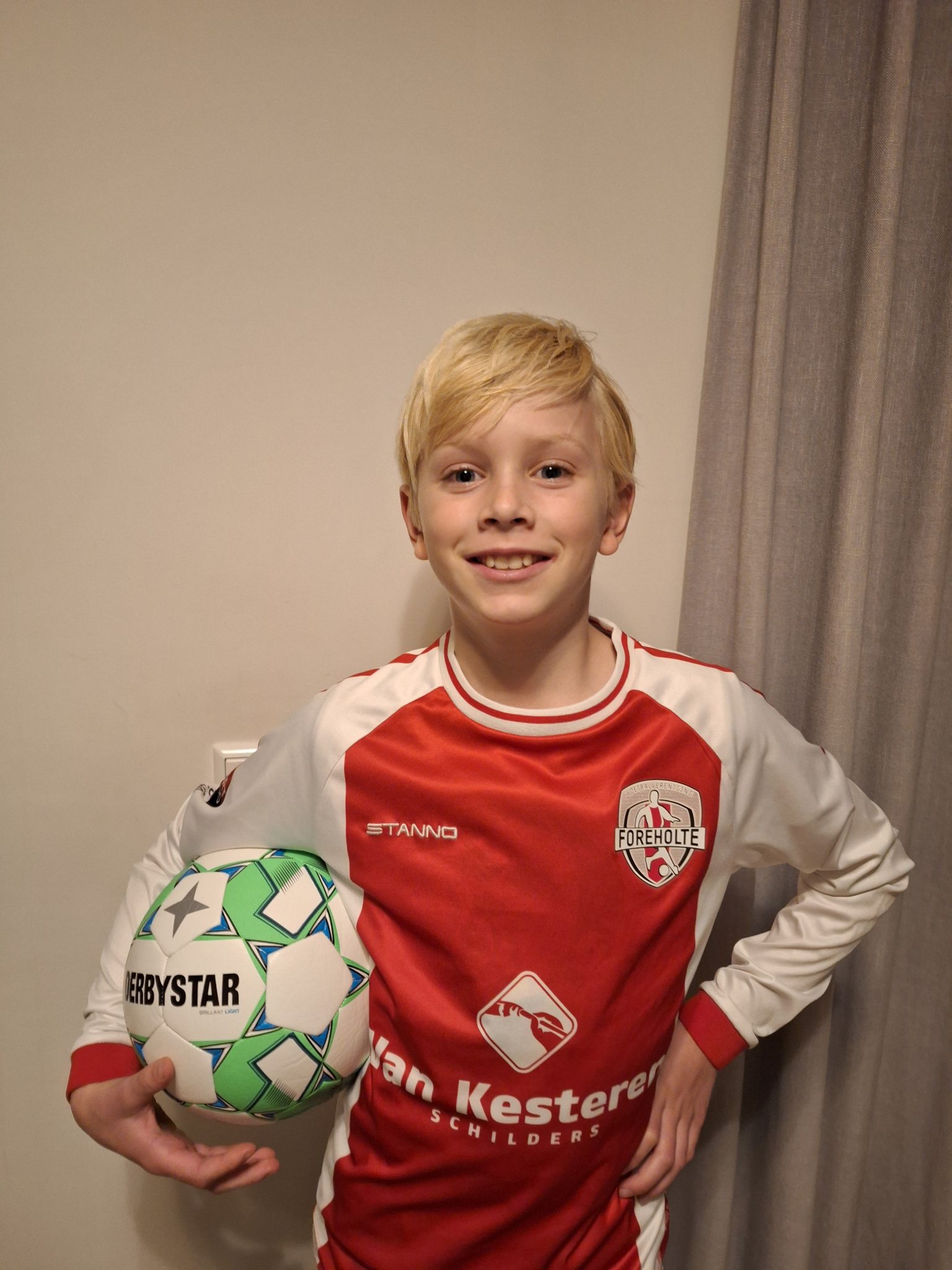 Sjors (10) speelt in de JO11-4 als linksachter, houdt van avontuur — zowel op het veld als daarbuiten — en droomt ervan om later archeoloog te worden. Zijn favoriete speler? Kylian Mbappé! Veel plezier zaterdag, Sjors!